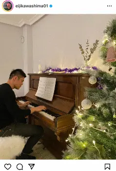 川島は「Merry Christmas」とコメントし、クリスマスツリーの前で子供3人と妻との笑顔の写真をアップ。家族団らんの様子を投稿した。