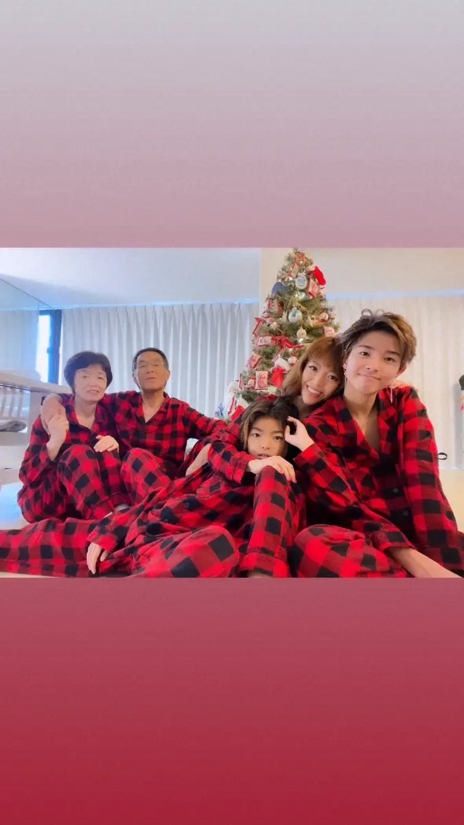 山口達也の元妻・高沢悠子さん 長男Shotaro、次男、両親とお揃いパジャマ姿で“Xmas家族写真”