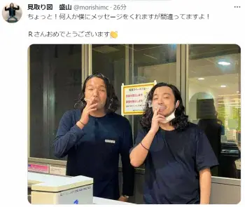 「見取り図」盛山晋太郎ツイッター(@morishimc)から 見取り図・盛山、そっくりさんの結婚を祝福 「え、どっち?」「混乱する… ギャラリーで見る この記事のフォト 2022年12月27日の画像一覧 もっと見る 2022年12月27日の画像をもっと見る