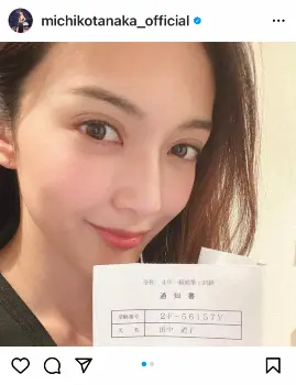 田中は事務所を通じ、「令和4年一級建築士試験に合格したことをご報告致します。学生の頃から、いつかは…と夢見た資格でしたので感慨無量です。二級取得から約 8年ぶりの猛勉強で、理解が追いつかず悔し涙を流す事も多くありましたが、熱心に指導してくださった資格学校の先生方、そして資格取得に応援してくださった関係者の皆様、ファンの皆様には感謝の気持ちでいっぱいです。現時点では資格を取得しただけですので、今後も建築の知識を広げていき、いつかは建築界に携わったり、芸能のお仕事にも活かしたりできるよう精進してまいりますので、今後もご声援いただけたら嬉しいです」とコメントを出した。
