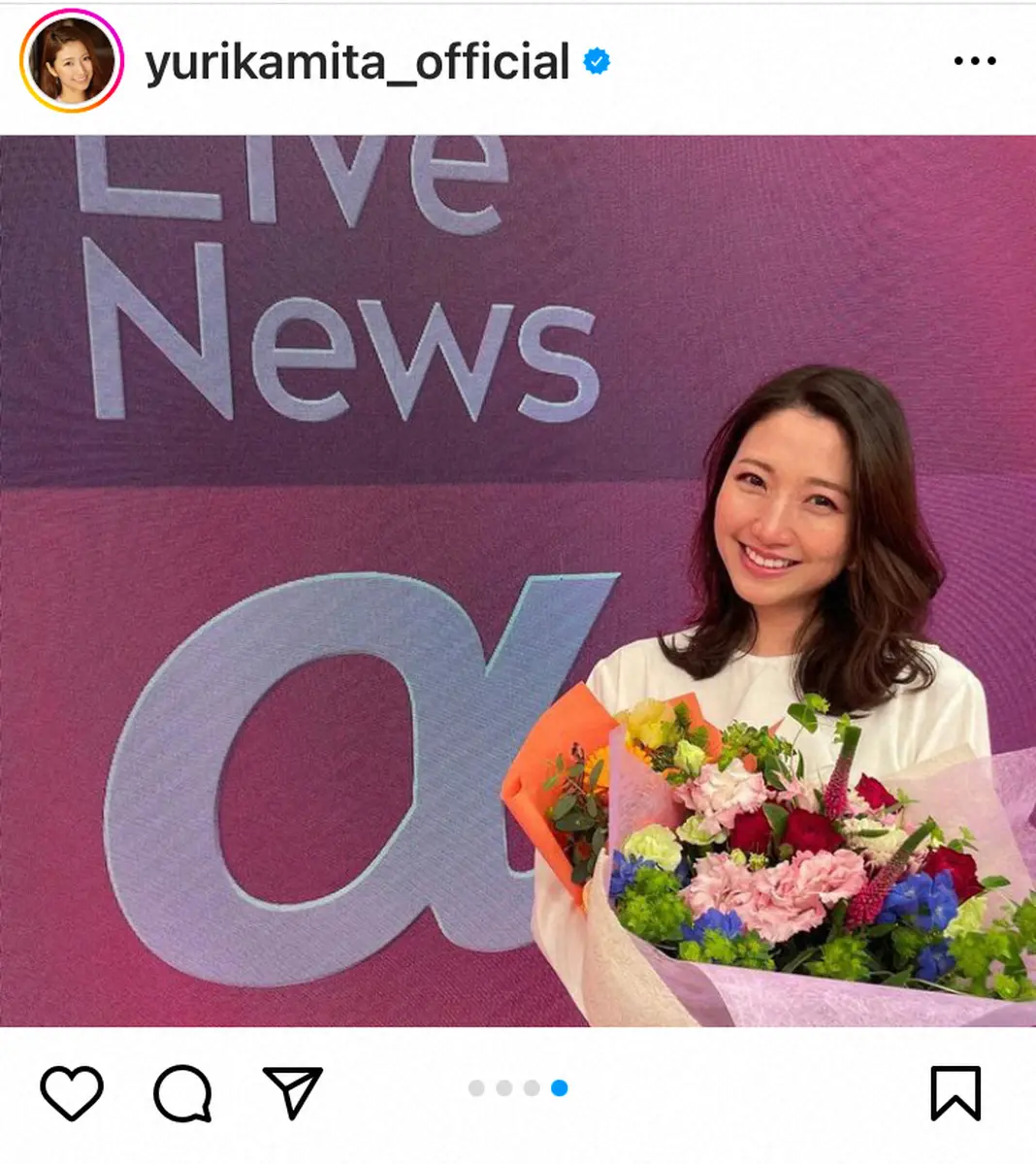 「2019年から約4年間担当してきたLive News α、昨夜の放送をもって番組を卒業しました」と報告。「報道キャスターは初めての挑戦で最初は私に担うことができるのか不安もありましたが、みなさまに支えていただき日々のオンエアに臨むことができました。番組を通してたくさんのことを学び、たくさんの新たな気づきがありました」と記し、「コメンテーターのみなさま、インタビューさせていただいたみなさま、そして夜遅い時間にも関わらずご覧いただいていたみなさま、本当にありがとうございました」と感謝をつづった。