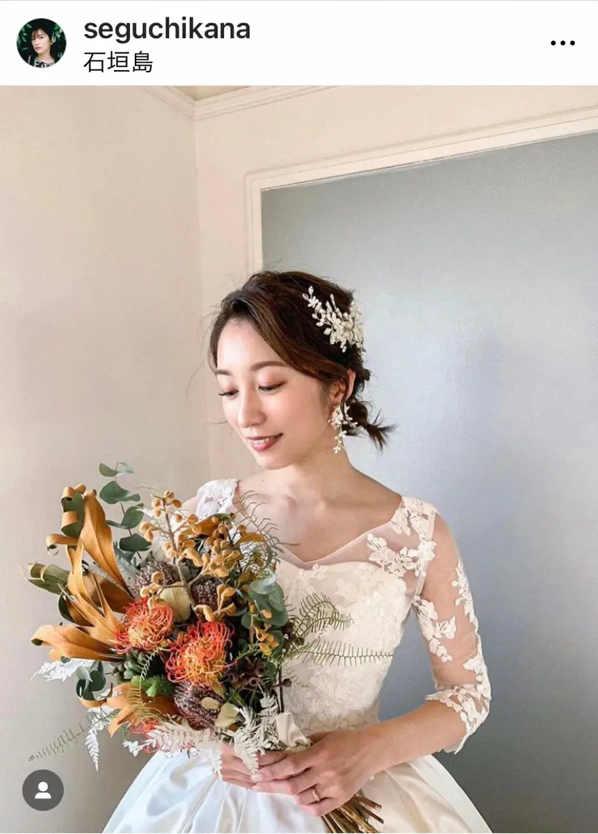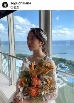 「実は先日沖縄石垣島で結婚式をあげました」と真っ白なウエディングドレスを投稿。「天気にも恵まれとても素敵な結婚式ができて本当に嬉しかったです」とつづった。