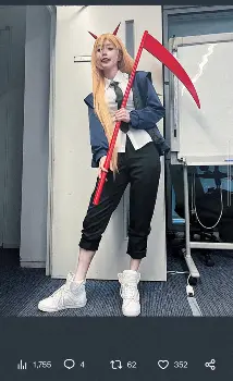 あの「チェンソーマン」パワーのコスプレで二重跳び&熱唱に「超似合ってる」「かっこかわいい」の声
