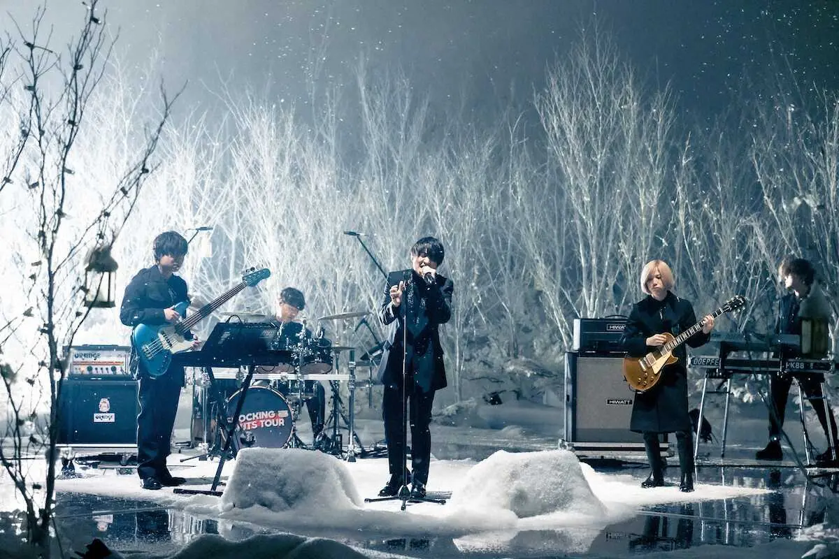 101スタジオから中継で出演したOfficial髭男dismは4人全員が黒の衣装で統一していた。連続ドラマ「silent」が大反響を呼び、主題歌「Subtitle」にも注目が集まったことにボーカルの藤原聡は「素晴らしいドラマだったので、音楽という形でチームに携われてたことを誇りに思っております」と明かした。