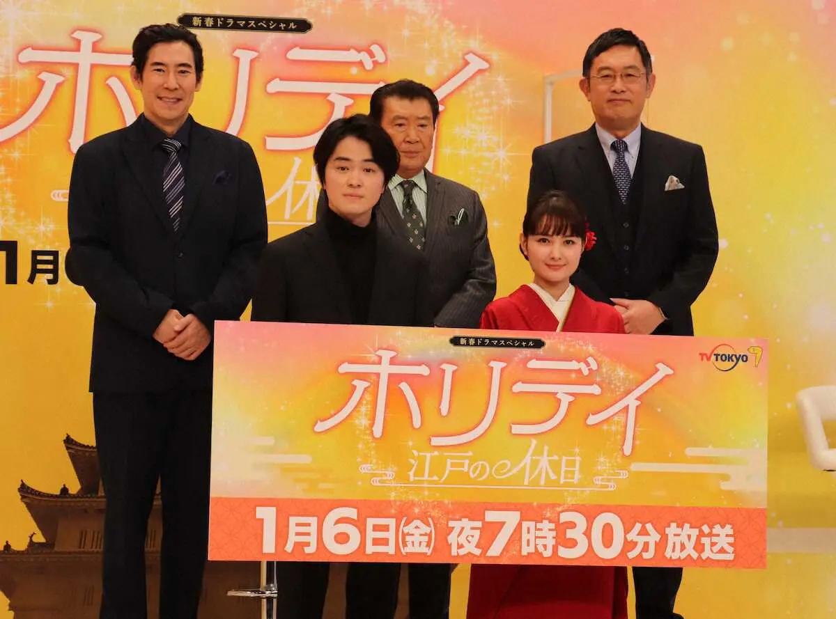 「ホリデイ~江戸の休日~」の記者会見に出席した(前列左から)望月歩、里見浩太朗、葵わかな、(後列同)高嶋政伸、内藤剛志(C)テレビ東京 Photo by 提供写真 葵わかな 赤い振り袖姿で魅了「マグロと同じ色だった」 新春ドラマ「ホ… ギャラリーで見る この記事のフォト 2023年01月03日の画像一覧 もっと見る 2023年01月03日の画像をもっと見る
