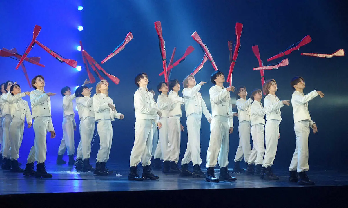 故ジャニー喜多川さんのエンターテインメントの集大成と位置づけられ、12年に初上演されたシリーズの最新作。稽古期間は今までの約2倍で、東山の指導のもと、特別なトレーニングを実施した。「HiHi Jets」の高橋優斗(23)は「今までで一番きつかったけど、だからこそ今充実している」。「少年忍者」の川崎皇輝(20)は「お三方の新しい演出、そしてネクストステージにふさわしい作品と皆さまに感じていただける1カ月にしたい」と気合を入れた。