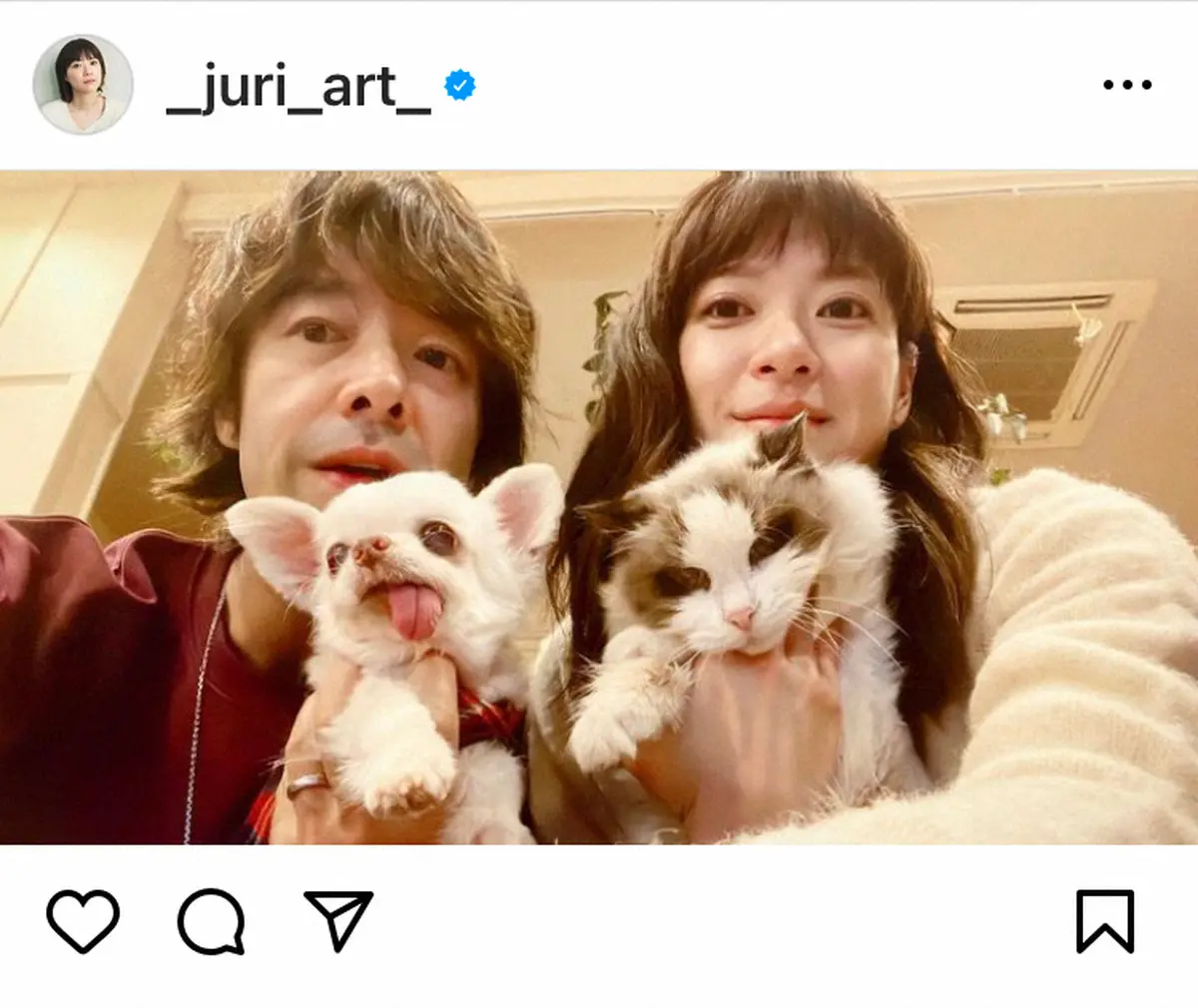 女優の上野樹里(36)が4日までに自身のインスタグラムを更新。夫で、ロックバンド「TRICERATOPS」のボーカル・ギター和田唱(47)とのレアな夫婦ショットを披露した。