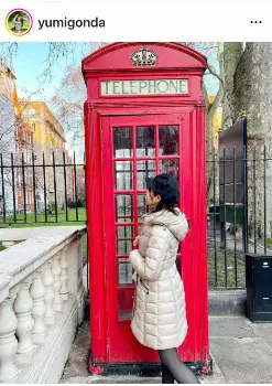 年明けの投稿で、フランス・パリでの家族ショットを披露していた裕美さん。この日は「年越しはパリから移動しました♪」と実はパリからすでに移動していたことを告白。「ヨーロッパの赤い電話ボックスと言えば…?」とおなじみな赤の電話ボックス前でのショットをアップした。