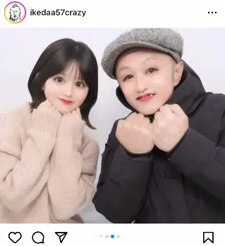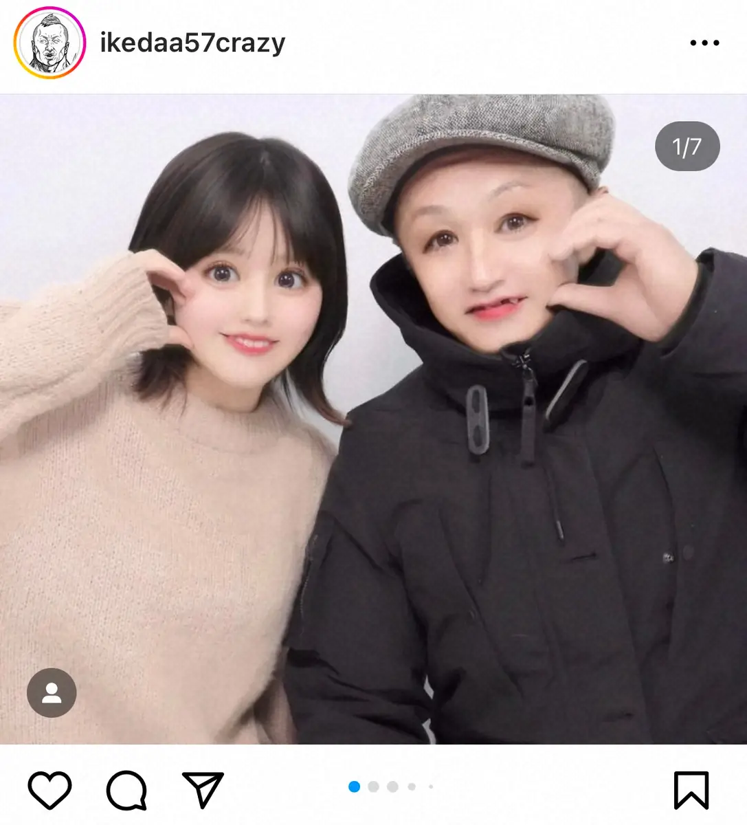 お笑いコンビ「完熟フレッシュ」の池田57CRAZY(47)が、5日までに自身のインスタグラムを更新。相方で娘の池田レイラ(17)とのプリクラを公開した。