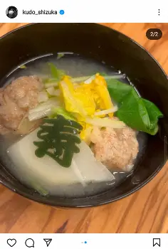 歌手の工藤静香(52)が6日、自身のインスタグラムを更新し、肉チラシ寿司とエビ団子汁を披露した。