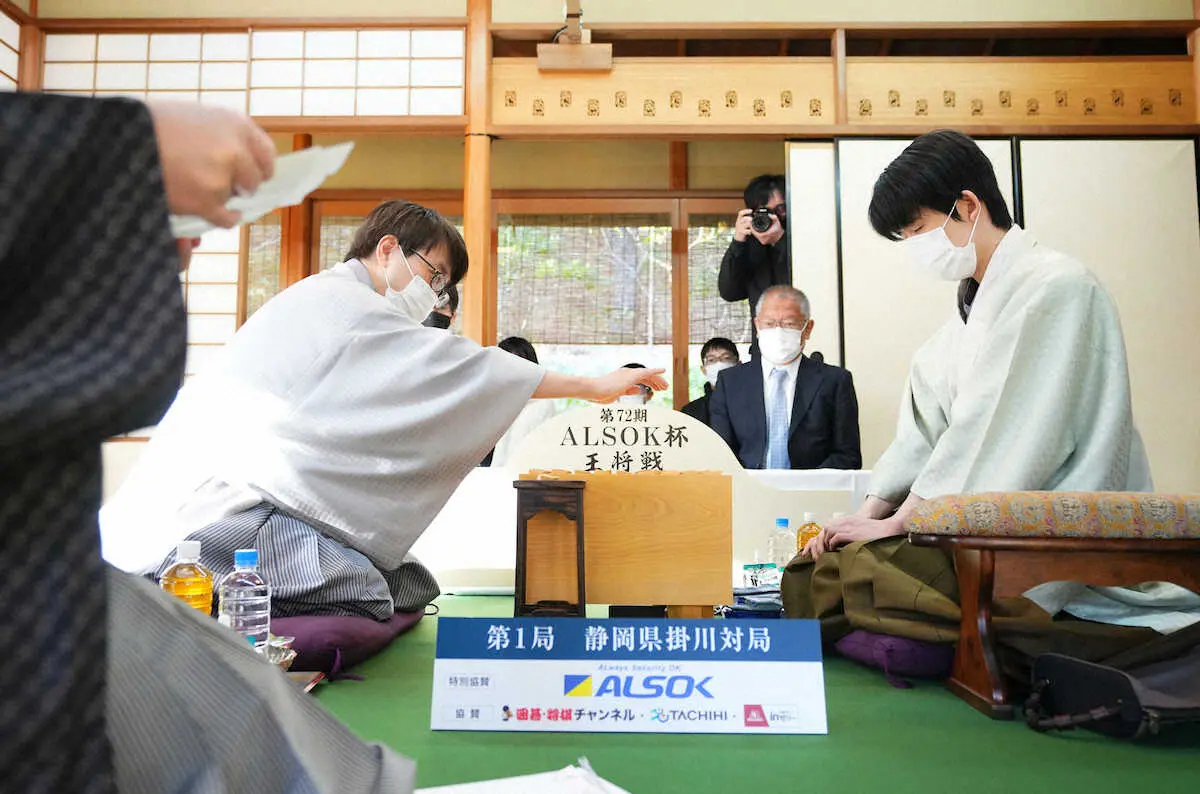 <第72期王将戦 第1局第2日>封じ手が開封され、目をつむる藤井王将。手前は羽生九段(撮影・河野 光希) Photo by スポニチ 藤井王将VS羽生九段 王将戦第1局、対局再開 封じ手は「5八同成銀」 ギャラリーで見る この記事のフォト 2023年01月09日の画像一覧 もっと見る 2023年01月09日の画像をもっと見る