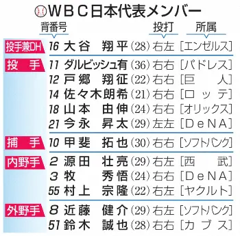 3月に開催される大会は、各プール4つに分け、東京ドームが会場となるプールBに入った日本は9日の中国戦で開幕。その後、10日に韓国、11日にチェコ、12日にオーストラリアと対戦する。プールAとプールBの上位2カ国が15、16日に東京ドームで行われる準々決勝に進み、その上位2カ国が米フロリダ州マイアミのマーリンズ本拠地ローンデポ・パークで19日(現地時間)から行われる準決勝、決勝に望む。