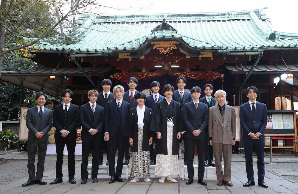 今年度20歳を迎えたジャニーズ事務所所属のタレント11人が10日、東京・港区の赤坂氷川神社で成人式に臨んだ。ジャニーズJr.「HiHi Jets」からは作間龍斗(20)と猪狩蒼弥(20)が参加した。