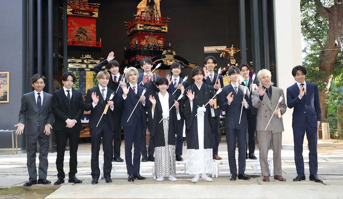 なにわ男子の道枝駿佑(20)、長尾謙杜(20)ら今年度20歳を迎えたジャニーズ事務所所属のタレント11人が10日、東京・港区の赤坂氷川神社で成人式に臨んだ。Sexy Zoneの菊池風磨(27)が、昨年ジャニーズ事務所の子会社「ジャニーズアイランド」の社長に就任した井ノ原快彦(46)、TOKIOの国分太一(48)とともに立会人となった。