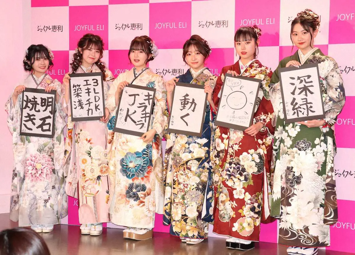 6人は色鮮やかな振り袖姿で登場。石川は8日に地元・北海道の「二十歳の集い」に参加したといい「幼稚園の幼なじみとかが昔の面影を残しながら大人になっていた。最高の思い出になりました」と声を弾ませた。わたげは「特別な日になりました。出るだけですごくいい思い出」と晴れの日の喜びを語った。
