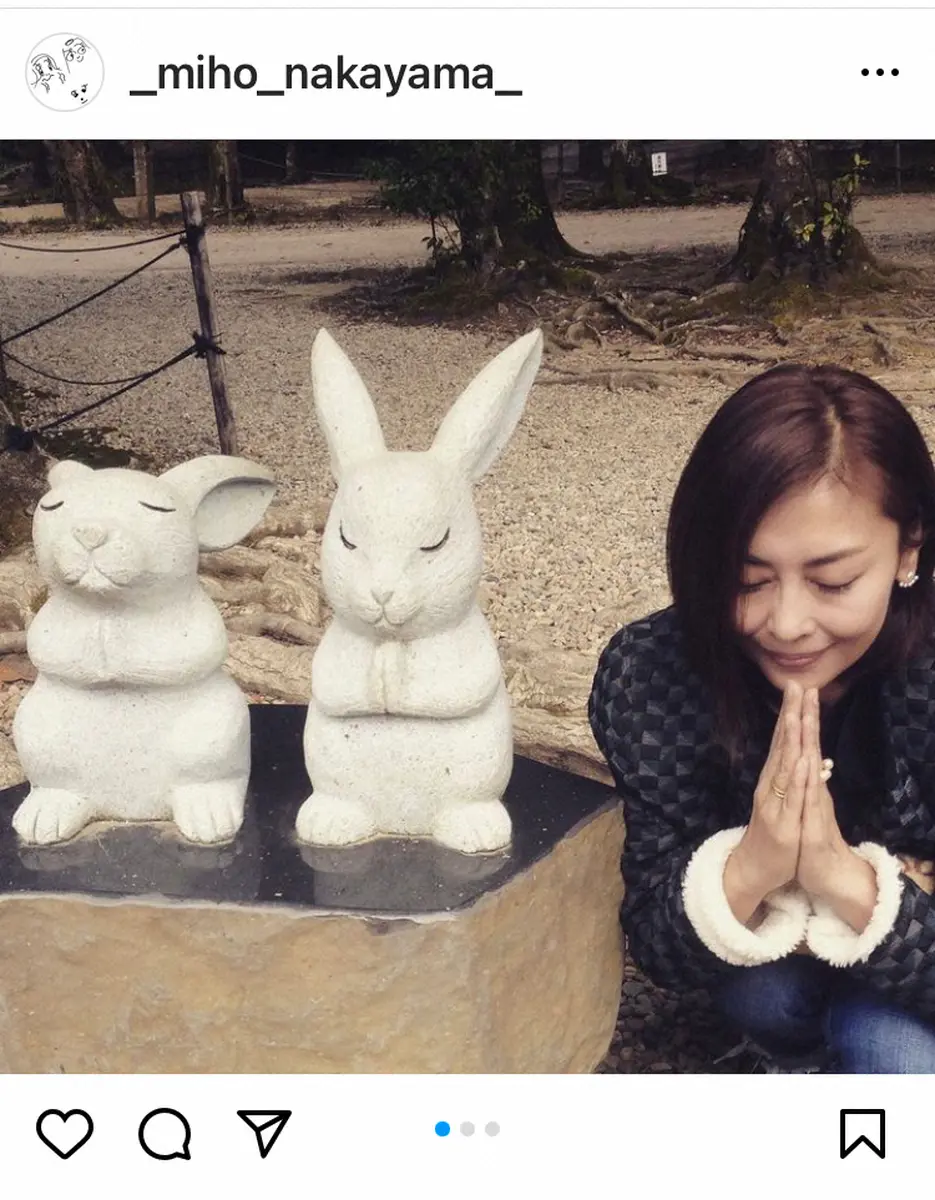 女優で歌手の中山美穂(52)が11日、自身のインスタグラムを更新。約24年前と思われるうさ耳帽のキュートな姿を公開した。