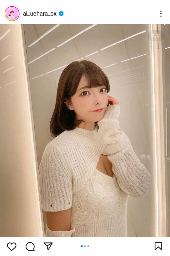 上原亜衣 “穴あきニット”姿を披露に「もう、心臓ドキドキだょ~~」「よいと思います」「気になります」