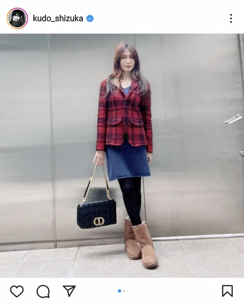 工藤の投稿に、フォロワーからは「ほんといつまでも綺麗(きれい)」「笑顔も可愛い」「静香さん キュンしました」「赤いカジュアルで素敵ですね!!可愛い スリムでスタイルよいとなんでも着こなせて羨(うらや)ましいです」「わぁ~カジャアルスタイルも素敵 ムートンブーツも可愛いね」「可愛いママ」「スタイル抜群 今日も素敵」「バックいいですね ミニお似合い」といった反響が寄せられている。