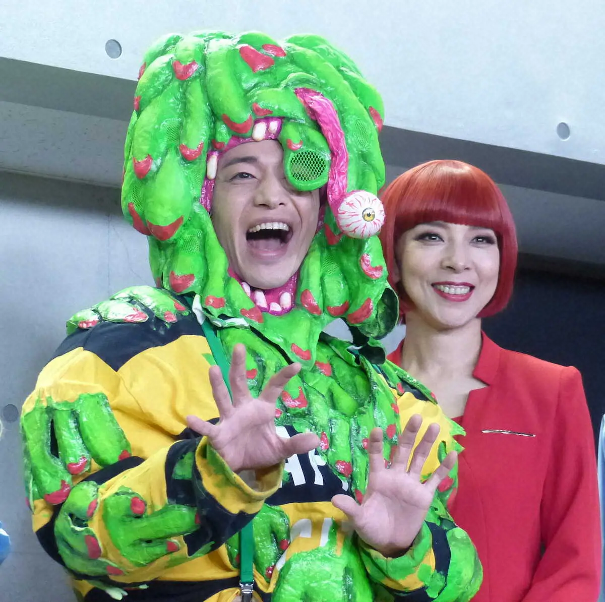 モンスターの衣装で取材に応じ「(グループ活動で)多忙な時期だったが、そこを乗り越える勢いで、この世界に飛び込みたい」と抱負を語った。メンバーの松崎祐介(36)が先月24日に一般女性と結婚。福田は「おめでとうの言葉を伝えました。僕も身の引き締まる思いです」と話した。22日まで同所で。