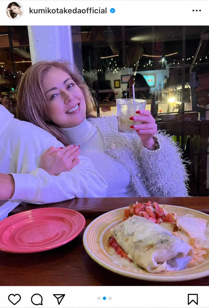 米国カリフォルニア州在住の女優・武田久美子(54)が15日、自身のインスタグラムを更新。楽しそうな食事風景を投稿した。