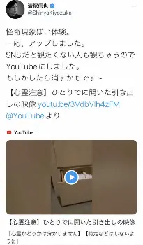 引き出しがひとりでに…(清塚信也氏のツイッター@ShinyaKiyozukaより) 清塚信也氏 ホテルの“超常現象”証拠動画公開!驚きの悲鳴と、音楽家なら… ギャラリーで見る この記事のフォト 2023年01月16日の画像一覧 もっと見る 2023年01月16日の画像をもっと見る