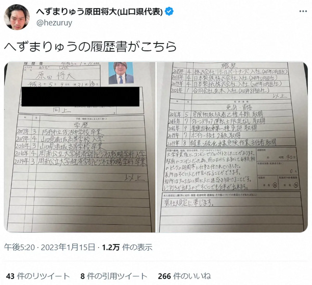 へずまりゅうインスタグラム(hezumaruy)から へずまりゅう 月収100万円など提示も自身を雇いたい会社が「5社集まりま… ギャラリーで見る この記事のフォト 2023年01月17日の画像一覧 もっと見る 2023年01月17日の画像をもっと見る