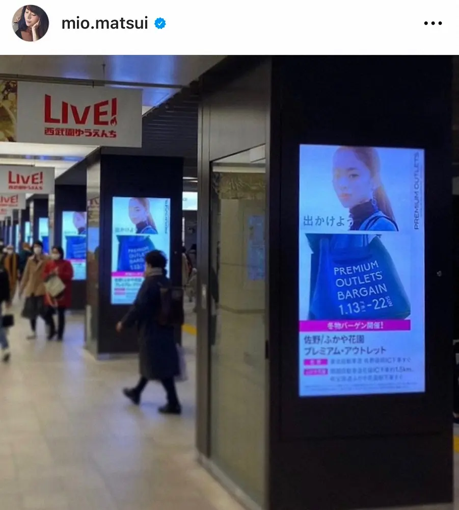 美緒は「…数ヶ月会ってない娘が駅にいっぱいて幸せ」と、JR品川駅のコンコースいっぱいに登場した愛娘の広告をアップ。遥南は現在、ショッピングモール「プレミアム・アウトレット」の広告モデルを務めている。