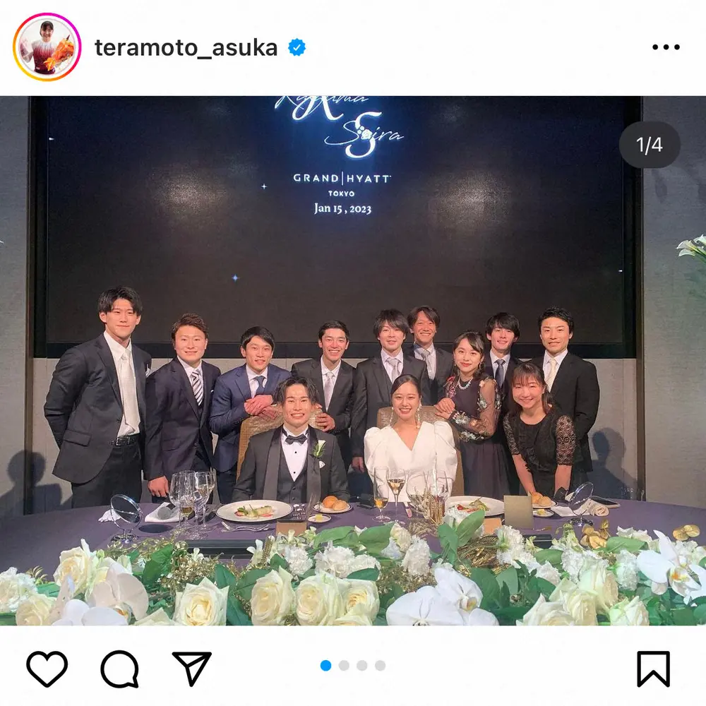 「Happy Wedding 素敵な結婚式でした ご招待ありがとう 末永くお幸せに」と添え、体操男子の個人総合で12年ロンドン、16年リオデジャネイロと五輪を連覇した内村航平さんや16年リオ五輪男子体操団体で金メダルを獲得し、21年に引退した白井健三さんらとともに新郎新婦との集合ショットをアップ。さらに「#倒立静止大会がハイレベルすぎる件」と男性の出席者がスーツ姿のまま会場で倒立して静止している余興の動画も上げ、「日本一ハイレベルな倒立静止大会ですwめちゃくちゃ盛り上がってました!」とコメントした。