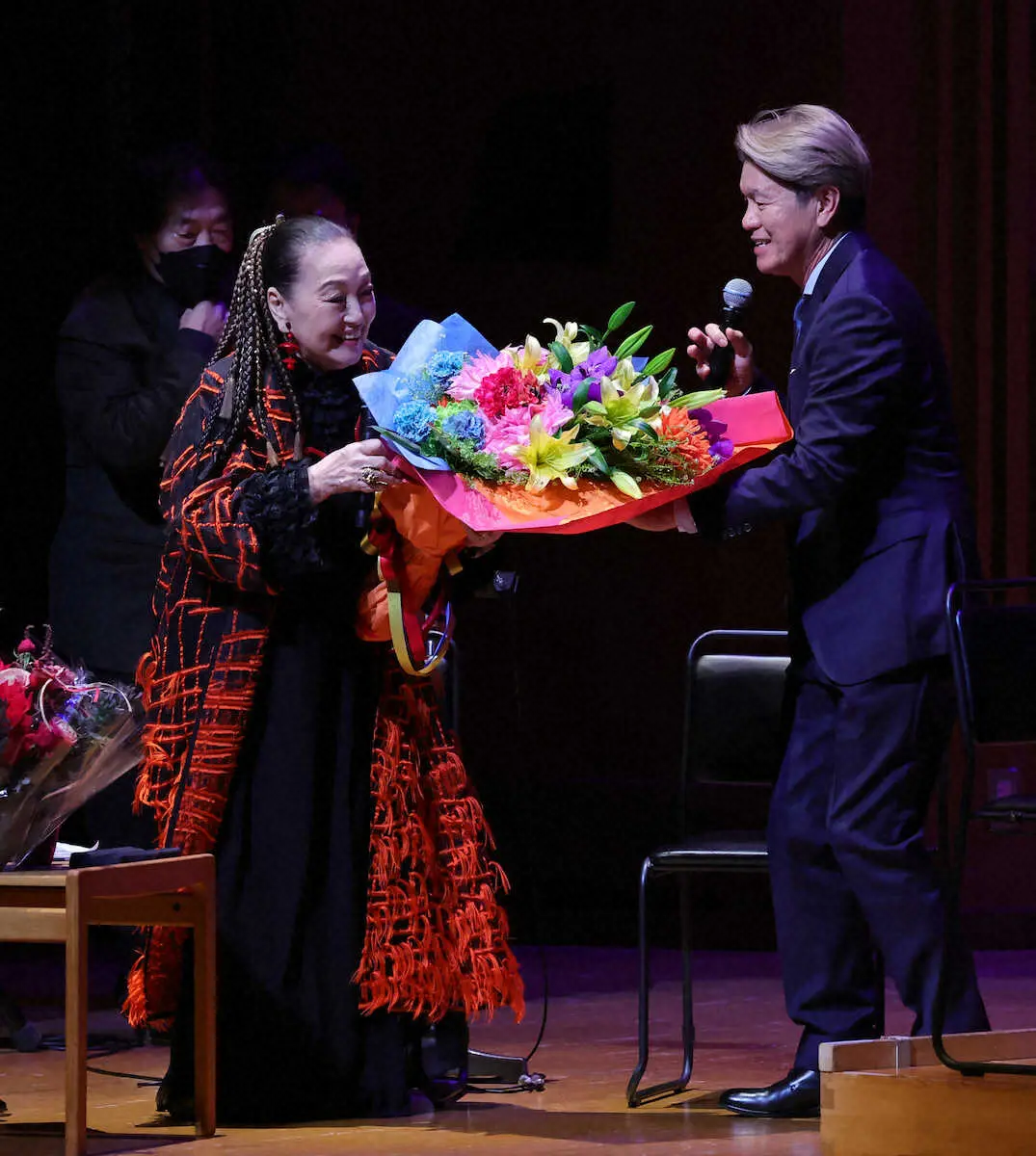 <湯川れい子87th Birthdayフィルハーモニー音楽会>公演中に松本伊代に電話する(右から)ヒロミ、湯川れい子、徳光和夫(撮影・光山 貴大) Photo by スポニチ 松本伊代 湯川れい子氏バースデーコンサートに電話出演「声は元気です」… ギャラリーで見る この記事のフォト 2023年01月19日の画像一覧 もっと見る 2023年01月19日の画像をもっと見る