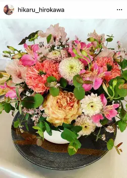 「朝から、家族ぐるみで仲良くしていた私の友人達からお花や竜ちゃんの好きなものが届きお供えさせて頂きました メールも沢山ありがとう 沢山の友人達に支えて寄り添って貰い感謝」と花束の写真をアップ。「#hikaruhirokawa #誕生日 #生誕62周年 #大寒」と添えた。