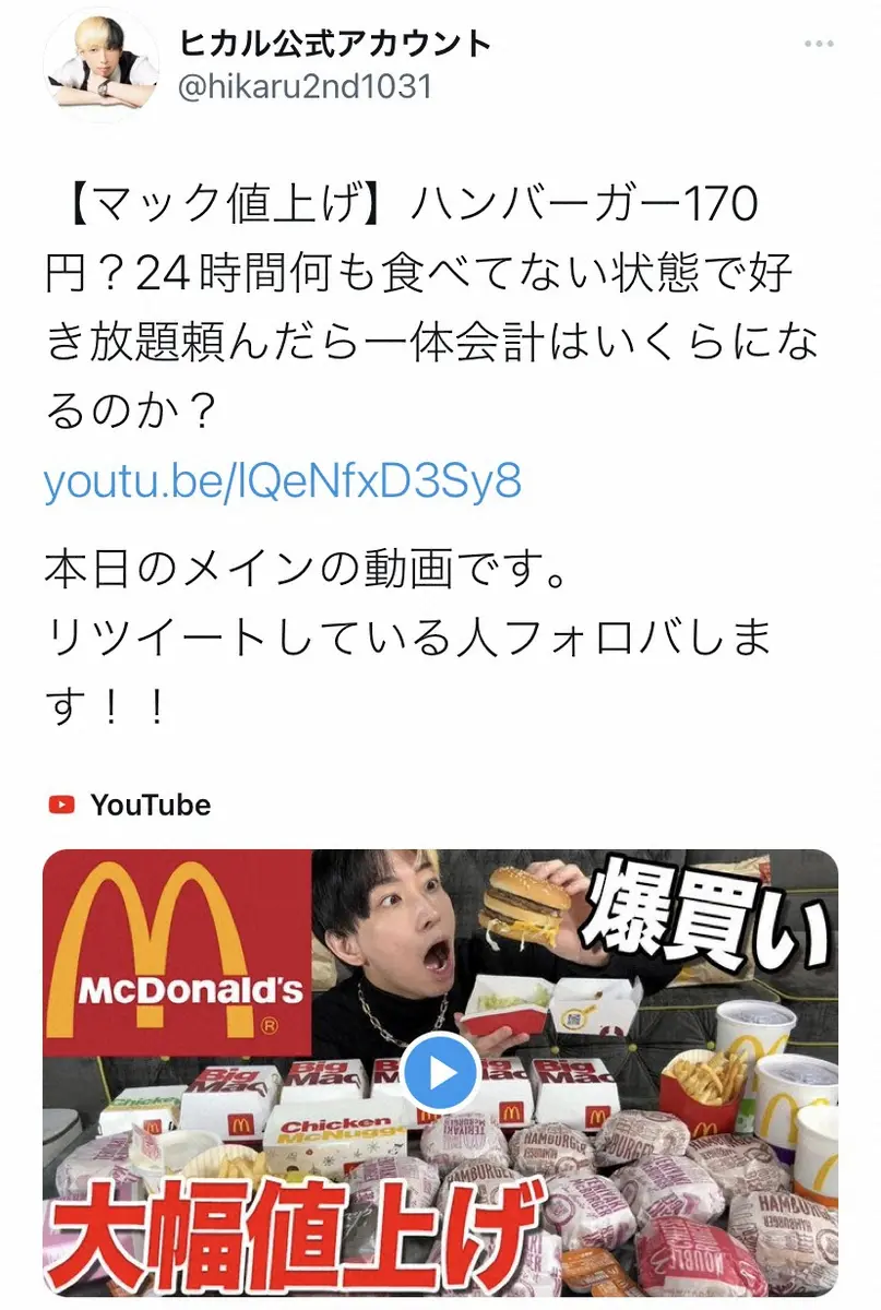 ヒカル Photo by スポニチ “マック値上げ”批判に待った! ヒカル「200円取っても違和感のないクオリ… ギャラリーで見る この記事のフォト 2023年01月23日の画像一覧 もっと見る 2023年01月23日の画像をもっと見る