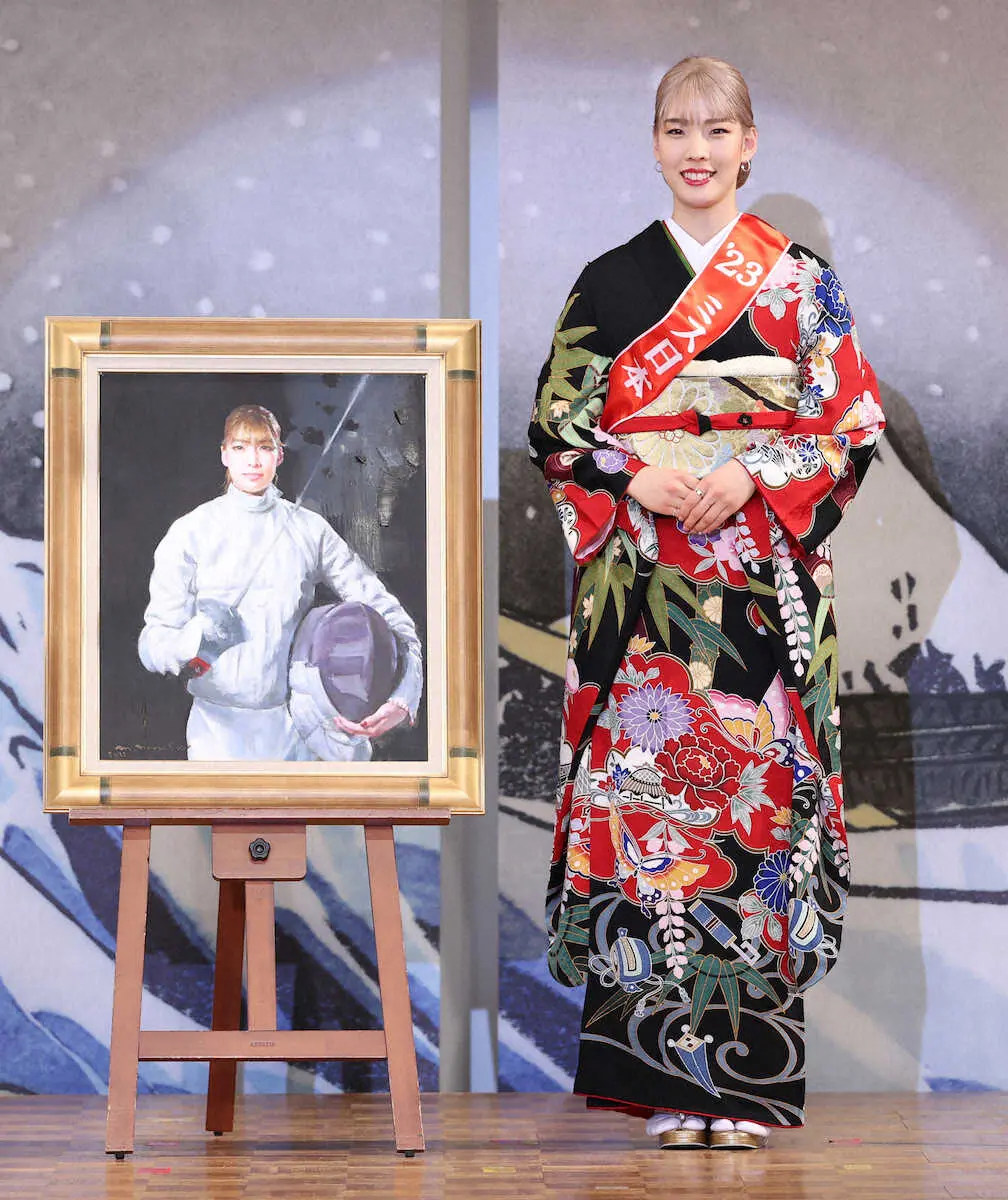 記念撮影する(左から)準ミス日本の東海林杏朱さん、ミス日本ミス着物の寺嶋琴さん、ミス日本みどりの大使の上村さや香さん、ミス日本グランプリの吉岡恵麻さん、「和田静郎特別顕彰ミス日本」に選出されたフェンシングの江村、ミス日本「水の天使」の竹田聖彩さん、ミス日本「海の日」の稲川夏希さん(撮影・木村 揚輔) Photo by スポニチ 【ミス日本「特別顕彰」】江村美咲さん 昨年フェンシング世界選手権V パ… ギャラリーで見る この記事のフォト 2023年01月24日の画像一覧 もっと見る 2023年01月24日の画像をもっと見る