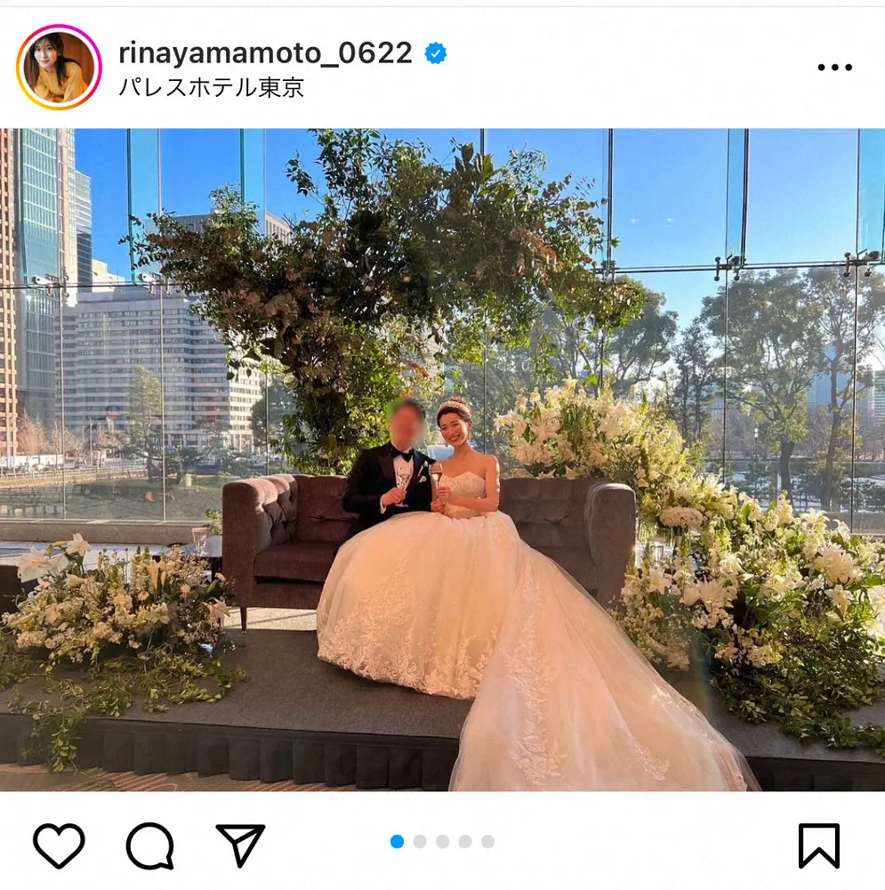 TBSの山本里菜アナウンサー(28)が24日、自身のインスタグラムを更新。披露宴でのウェディングドレス姿を披露した。