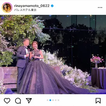 今回の投稿では、パレスホテル東京で開いた披露宴の様子をアップ。夫との2ショットも披露し「先日、結婚披露宴を行いました 天気にも恵まれ、大切な方々の前でご報告ができて嬉しかったです ゲストの皆さんからの温かい祝福の拍手に包まれてとても幸せな気持ちになりました」と感謝。「会場選びや準備からずっと寄り添いながら当日まで楽しませてくれた旦那さんに改めて感謝の気持ちが溢れてきました。これからも二人三脚、何があっても支え合っていけるように頑張ります」とした。