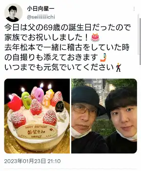 小日向星一 父・小日向文世の69歳の誕生日祝福「いつまでも元気でいて」