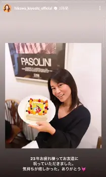 氷川は「23年間お疲れ様ってお友達に祝っていただきました。気持ちが嬉しかった。ありがとう」とつづり、ケーキを手に笑顔の姿を披露した。