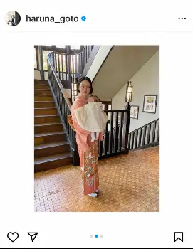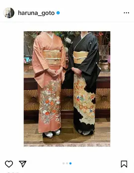 昨年10月に第1子女児を出産し、産休中の後藤アナ。「週末は結婚式でした」と報告。「おしどりがとっても可愛い母の色留袖を着ました」とつづり、ピンクの和服姿を披露した。