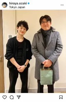 1992年に26歳の若さで死去した伝説の歌手・尾崎豊さんの長男で、シンガー・ソングライターの尾崎裕哉(33)が24日、自身のインスタグラムを更新。「とんねるず」の石橋貴明(61)との2ショットを投稿した。