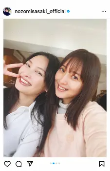 女優の佐々木希(34)が24日、自身のインスタグラムで、大親友の女優・大政絢(31)との仲良しショットを披露した。