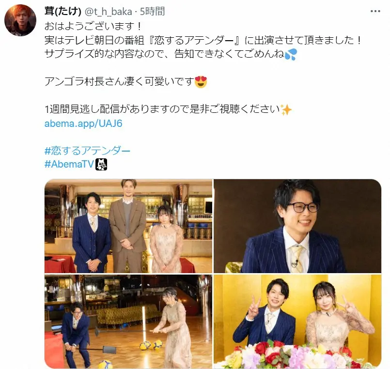 ユーチューバー・茸インスタグラム(t_h_baka)から アンゴラ村長、「顔がタイプ」人気ユーチューバーとカップルに お相手バ… ギャラリーで見る この記事のフォト 2023年01月26日の画像一覧 もっと見る 2023年01月26日の画像をもっと見る