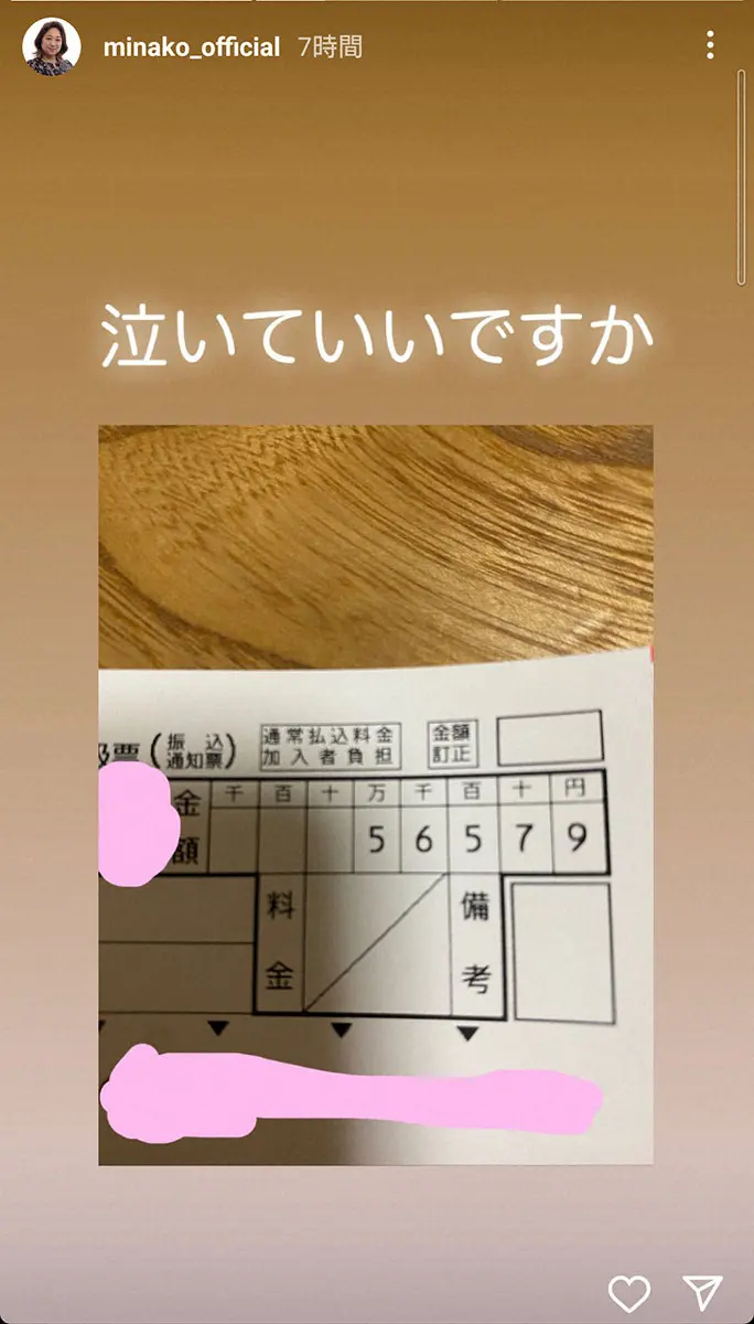 美奈子公式インスタグラム(@minako_official)から ビッグダディ元妻・美奈子 光熱費の請求書見て「泣いていいですか」 ギャラリーで見る この記事のフォト 2023年01月26日の画像一覧 もっと見る 2023年01月26日の画像をもっと見る