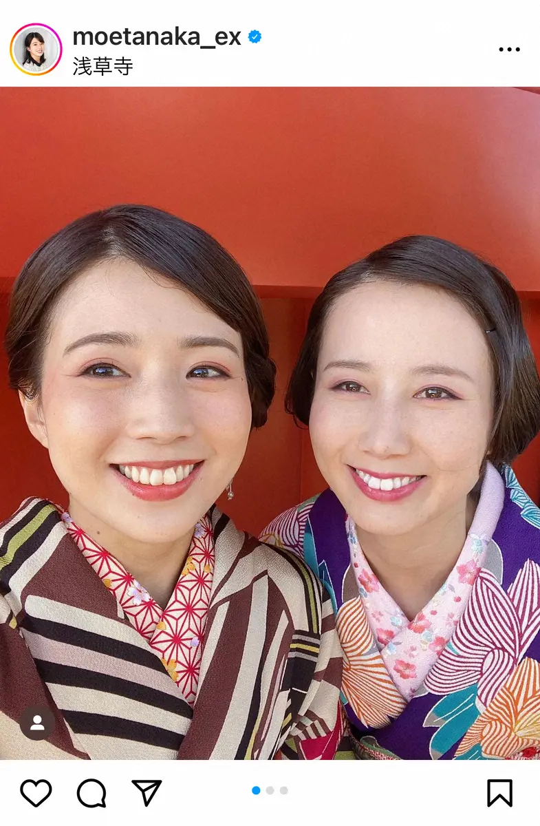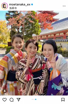 田中アナは「大正ロマン風の着物を着て浅草で撮った壁紙コンテンツの第2弾配信中です」と記し、森川アナや佐藤アナとの着物での2ショットや、浅草・浅草寺での3ショットなどをアップ。「楽しい撮影だったなー」とつづり、「テレ朝の会員限定コンテンツをご覧ください!」と呼びかけた。