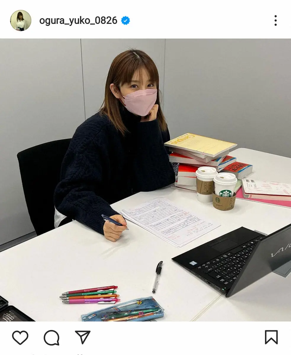 タレントの小倉優子(39)が26日、自身のインスタグラムを今年初めて更新。来月に迫った大学受験へラストスパートに入った姿を公開した。
