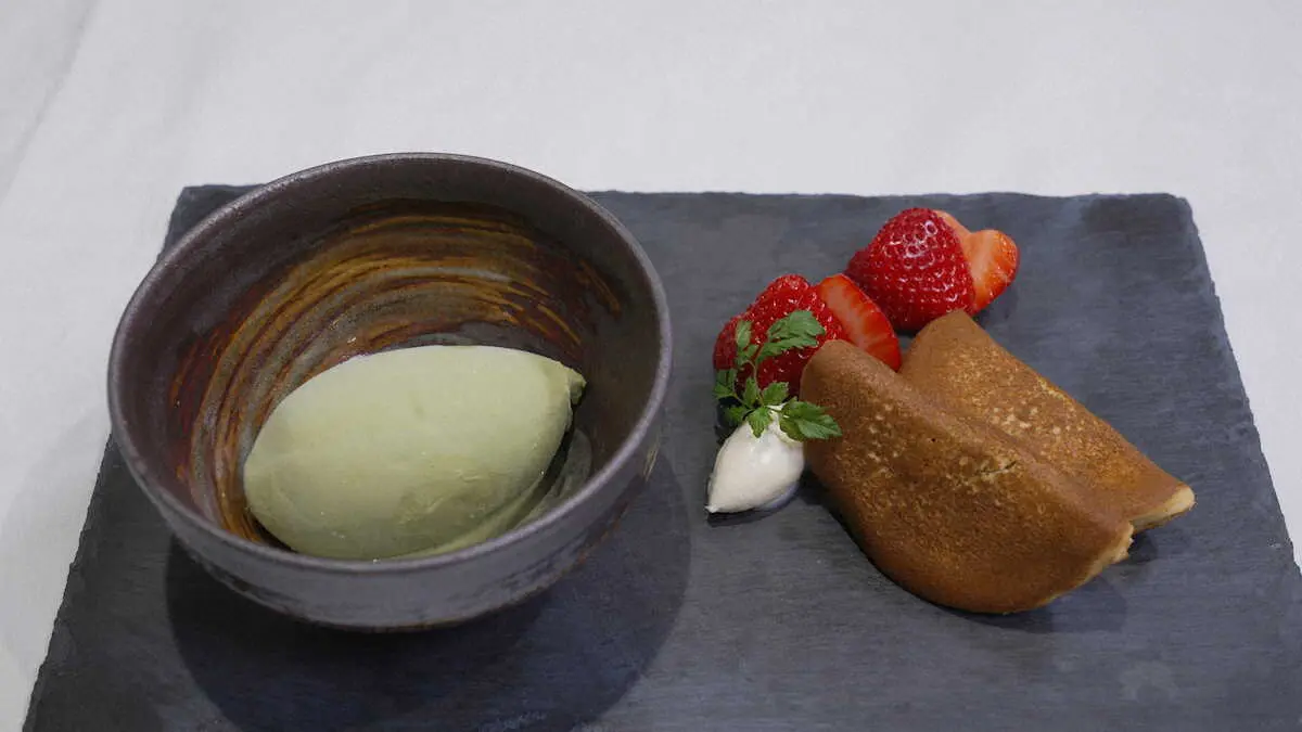 <第72期王将戦 第3局 第1日>藤井王将が注文したおやつ「和音(わおん)」(撮影・岸 良祐)