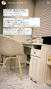 衛藤は「自分の夢の実現、目標の為に取り組む私に夫がデスクテーブルを組み立ててくれました。帰ったら、作ってくれていました。久しぶりに、声を出して泣きました」と感動したことを組み立ててくれたテーブルの写真とともに明かした。