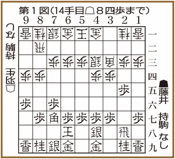 何をやってくるのか、全く分からない。羽生の14手目△8四歩=第1図。これで囲いが雁木に確定する。藤井相手に11局目の対決で初の戦型を、このタイミングでぶつけるとは。しかも主導権を握りにくい後手番で。