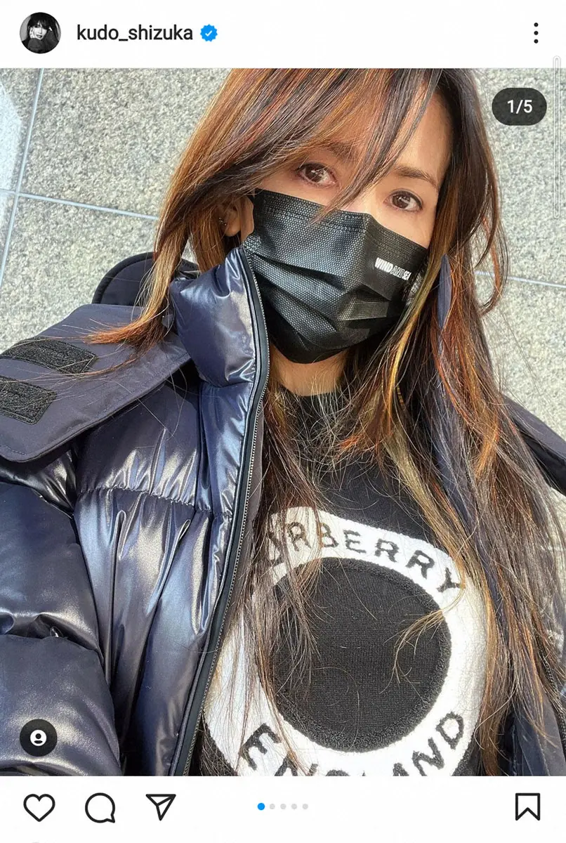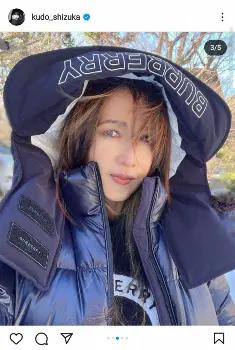 工藤は28日にバーバリーのダウンジャケット姿の写真を投稿。「おしゃれだし機能性が素晴らしい お腹にベルトの様なのがあり、身体に密着 手首も温かい そしてフードが大きいです」とつづった。