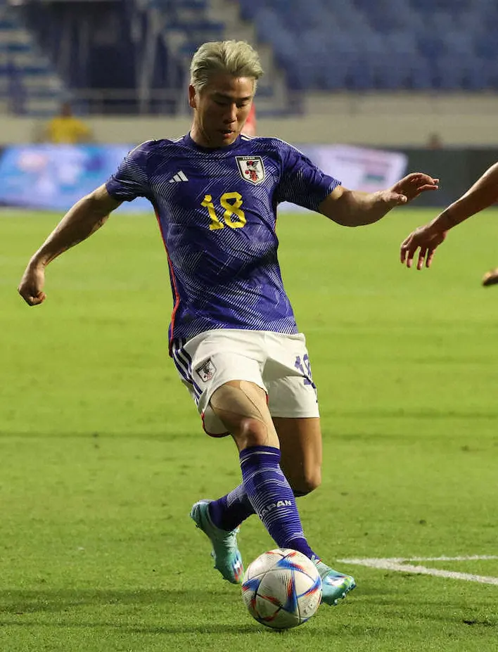 1次リーグ初戦のドイツ戦で板倉の縦パスに抜け出し、決勝ゴールを決めた浅野。試合中はボールを競って並走した相手DFリュディガーがゴールライン際で太腿を大きく上げた独特な走法を披露し“挑発走法”とも言われ、物議を醸した。