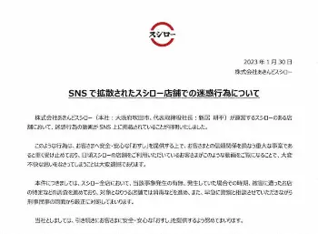 客の迷惑行為について「あきんどスシロー」が30日に発表した声明文 回転ずし店で相次ぐ迷惑行為…日本大好きラトビア人も怒り「そこらへんの草… ギャラリーで見る この記事のフォト 2023年01月31日の画像一覧 もっと見る 2023年01月31日の画像をもっと見る