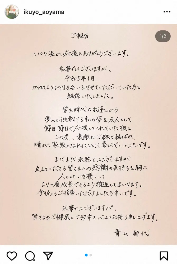 青山郁代インスタグラム(@ikuyo_aoyama)から 女優・青山郁代が結婚 「レ・ミゼラブル」「ミスサイゴン」などで活躍 … ギャラリーで見る この記事のフォト 2023年02月04日の画像一覧 もっと見る 2023年02月04日の画像をもっと見る